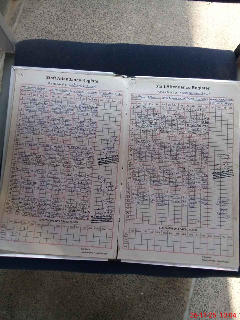 | Leave | Duty | Absent | Maternity | Medical | Ex- Pak |