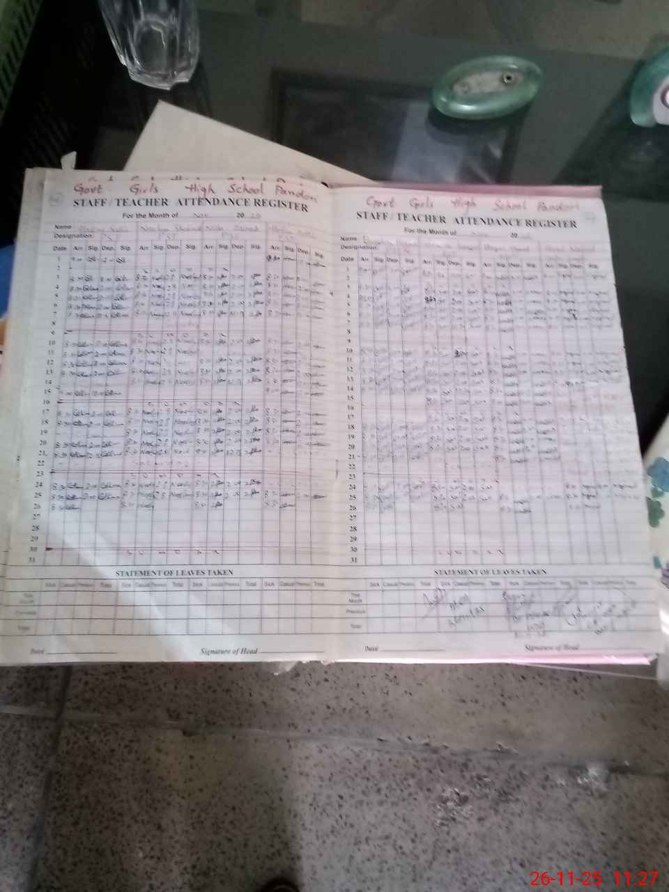 | Remarks (Use Separate Page if Required): Record of NSB is not being maintained properly moreover teacher Nida Zainab and Bushra Fiaz PST have been posted in this school but their names are not showing in the tab | |||||