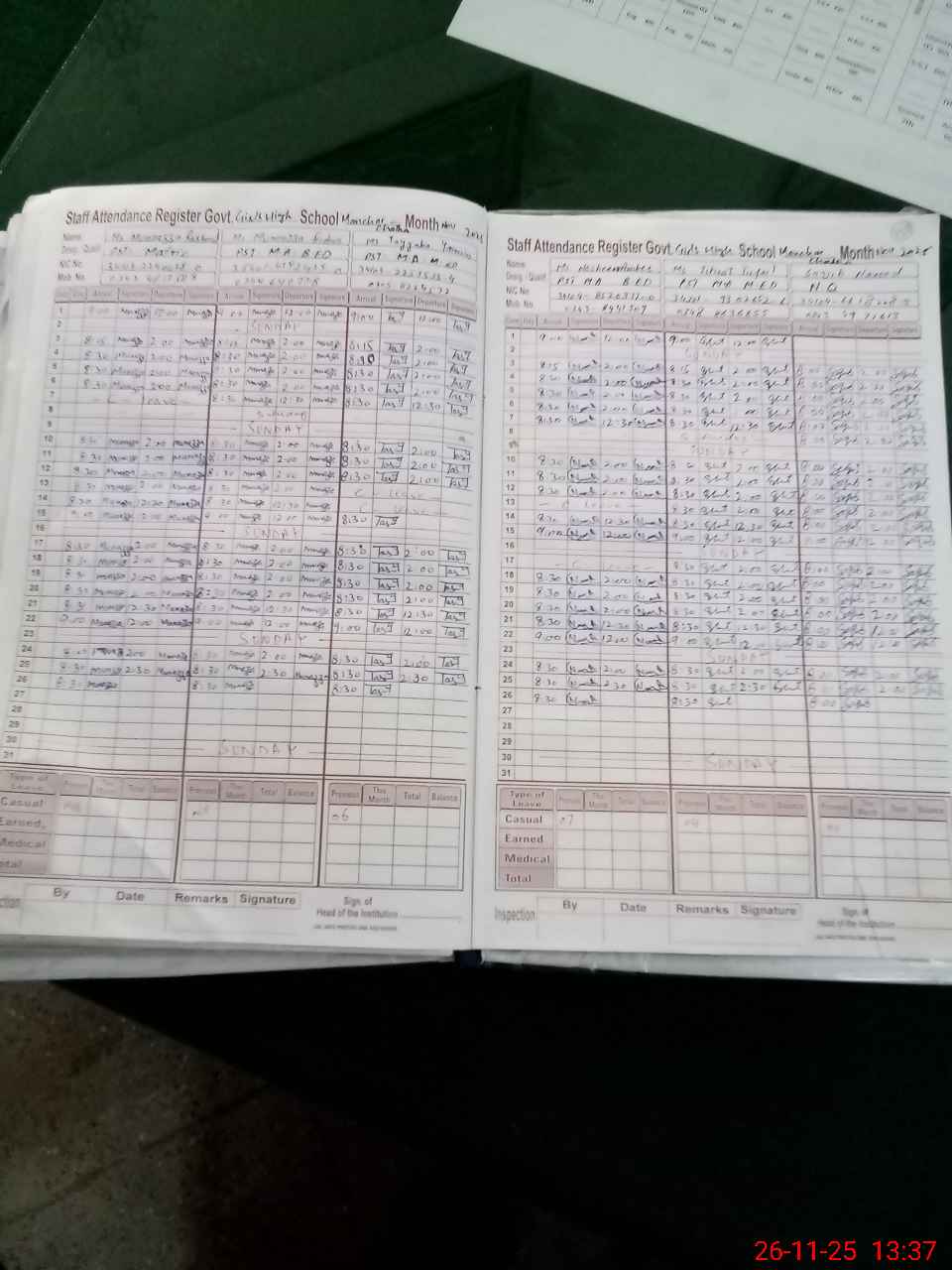 | CNIC | Full Name | Designation | R/C | Absence During Last Calender Month |