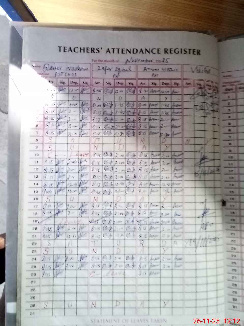 | Leave | Duty | Absent | Maternity | Medical | Ex- Pak |