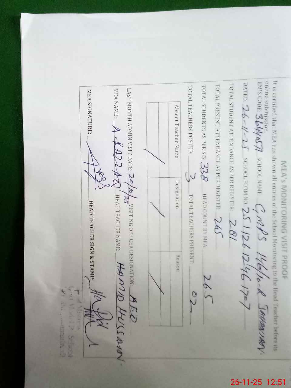| EMIS Code: 36440571 | Name of School: GMPS 146/10-R, JAHANIAN | |||
