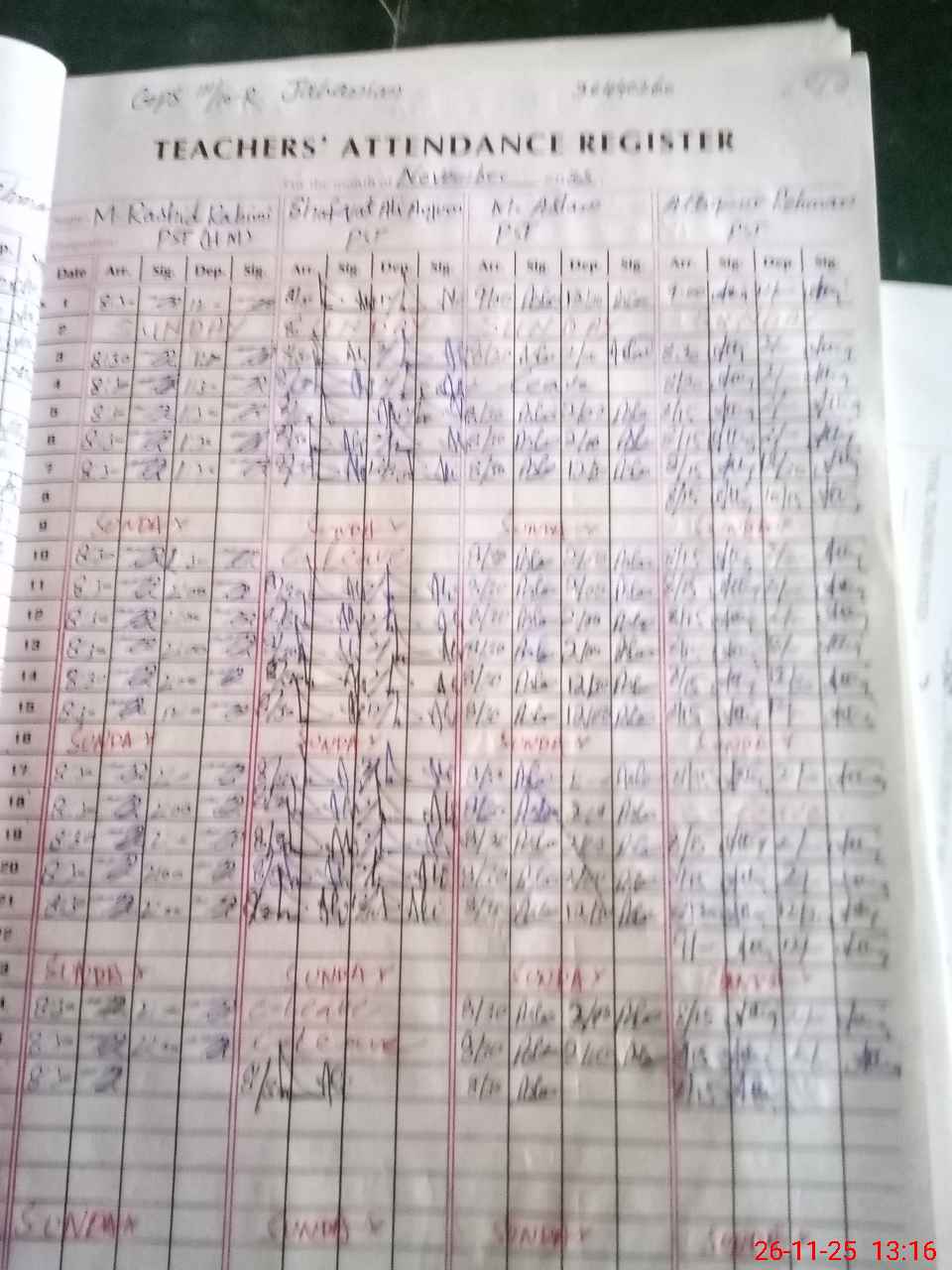 | CNIC | Full Name | Designation | R/C | Absence During Last Calender Month |