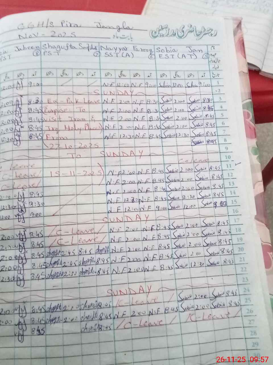 | Leave | Duty | Absent | Maternity | Medical | Ex- Pak |