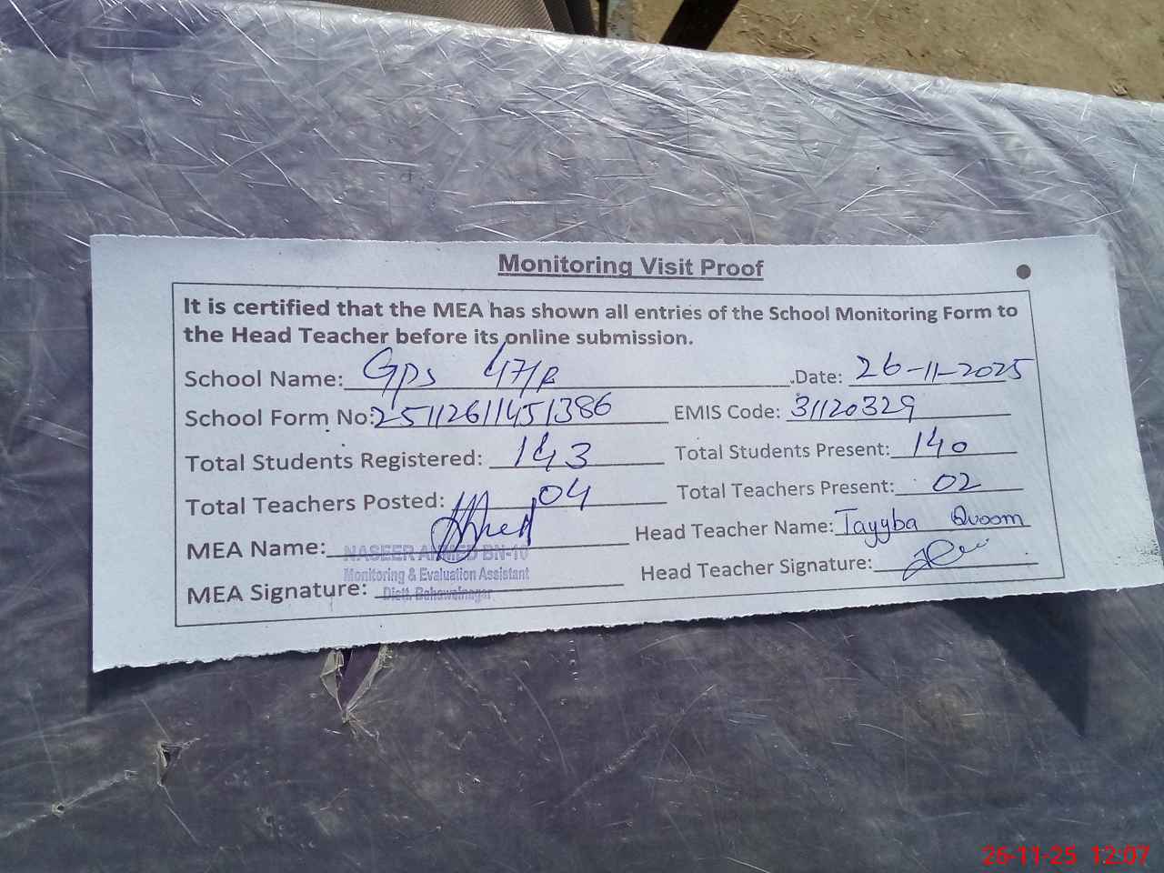| EMIS Code: 31120329 | Name of School: GPS CHAK 47/F | |||