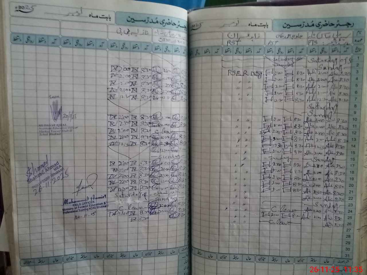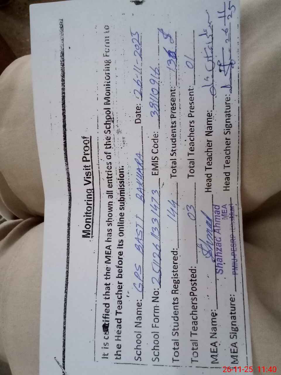 | Remarks (Use Separate Page if Required): Last visit mudassir Iqbal AEO 20 November 2025 | |||||
