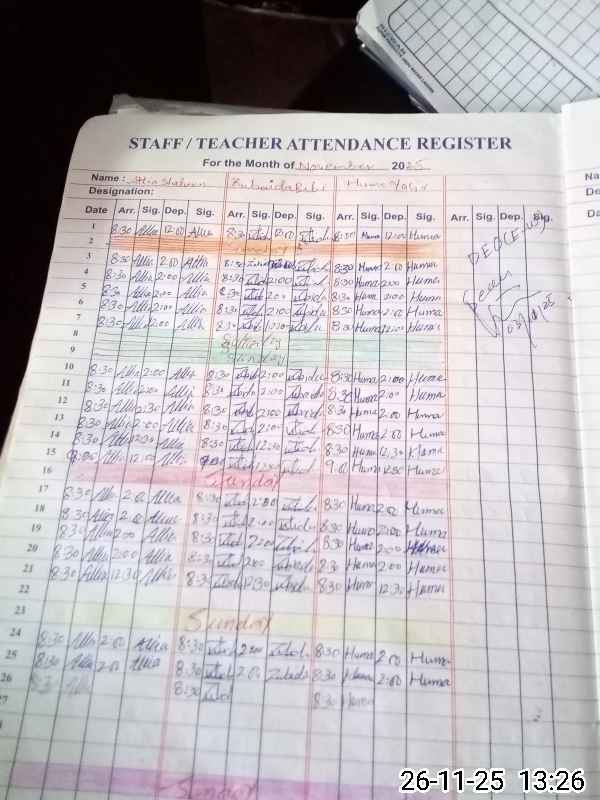 | Name: AT**** SH**** Designation: (School Headmaster's/Headmistress's) PST/PTC/JV Phone/Cell Number: 03**** |