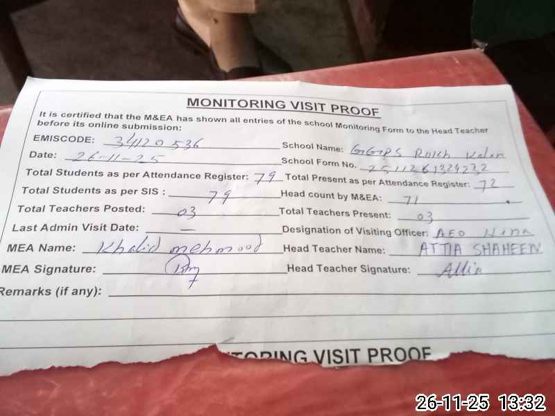 | Attendance Register | Head Teacher | MEA with School | Visit Proof |