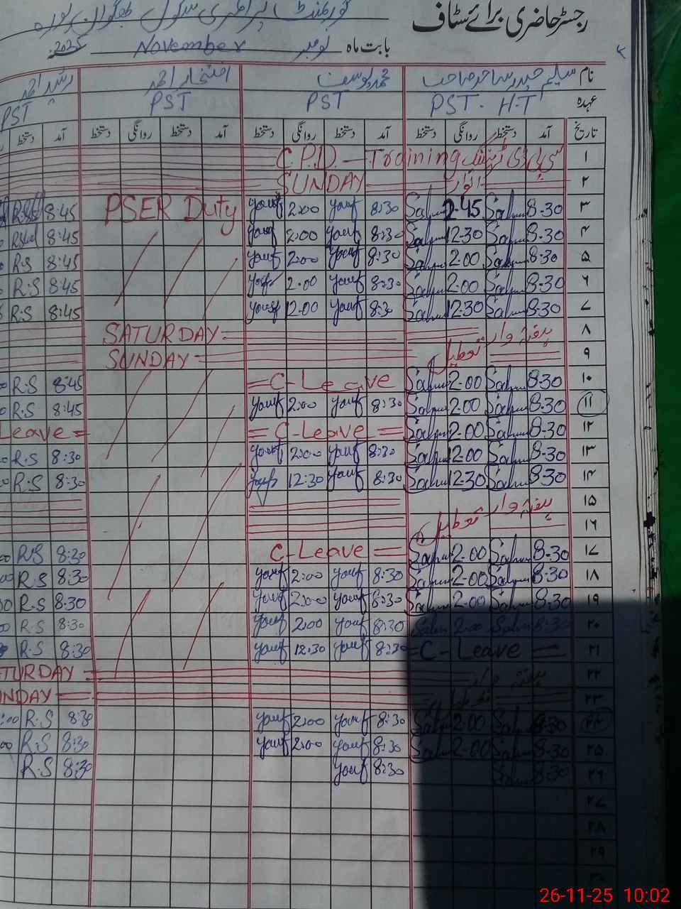 | CNIC | Full Name | Designation | R/C | Absence During Last Calender Month |