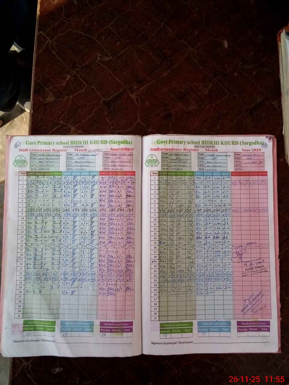 | CNIC | Full Name | Designation | R/C | Absence During Last Calender Month |