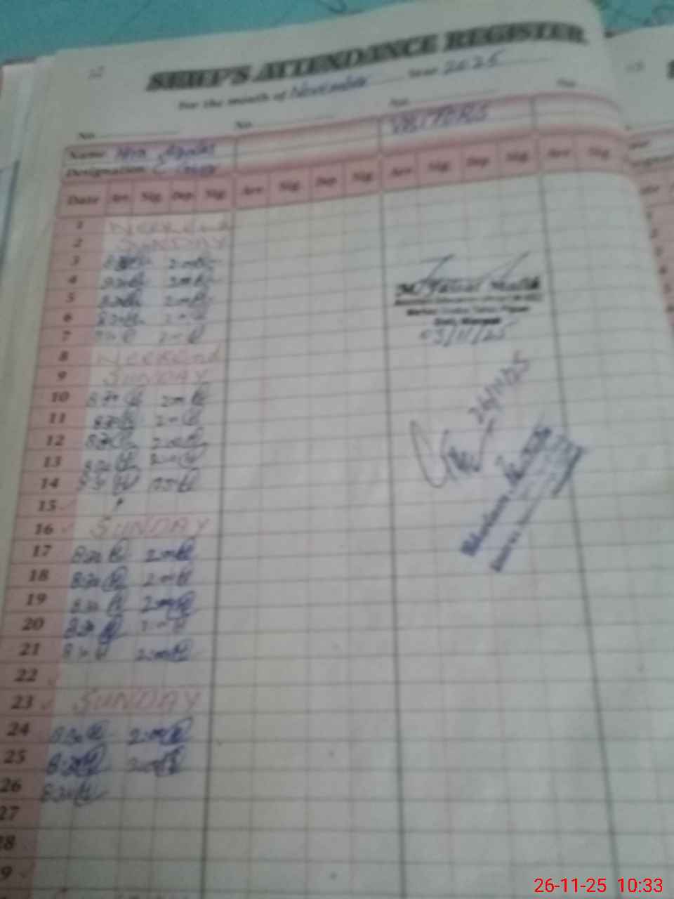 | Monitoring Date: 26-11-2025 | Start Time: 26-11-2025 10:23 AM | End Time: 26-11-2025 10:59 AM | Name of MEA: Gh**** Mu**** | |