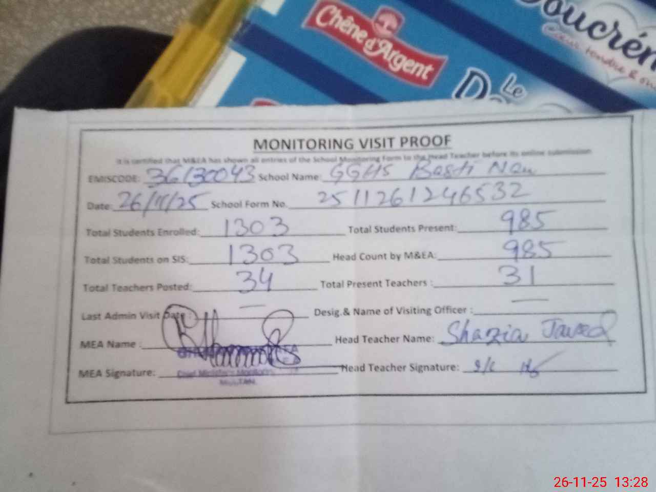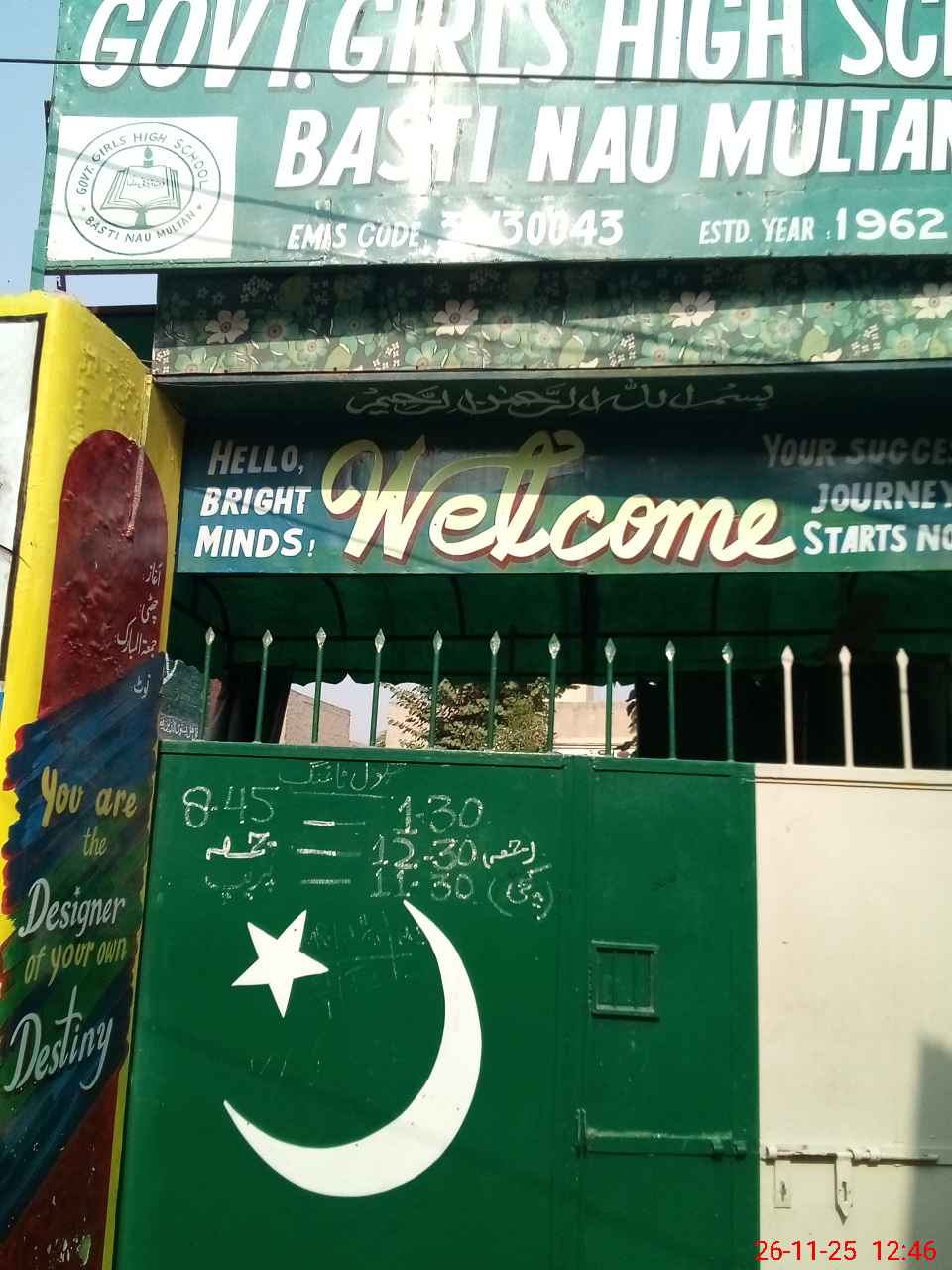 | EMIS Code: 36130043 | Name of School: GGHS BASTI NAU MULTAN | |||