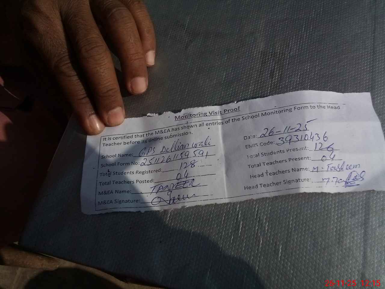 | EMIS Code: 39310436 | Name of School: GPS DELLIAN WALI | |||