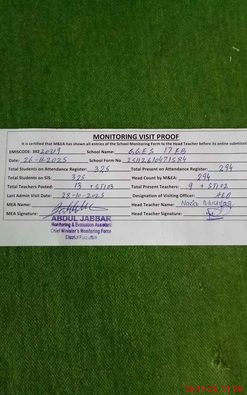 | EMIS Code: 39220319 | Name of School: GGES 17 EB | |||