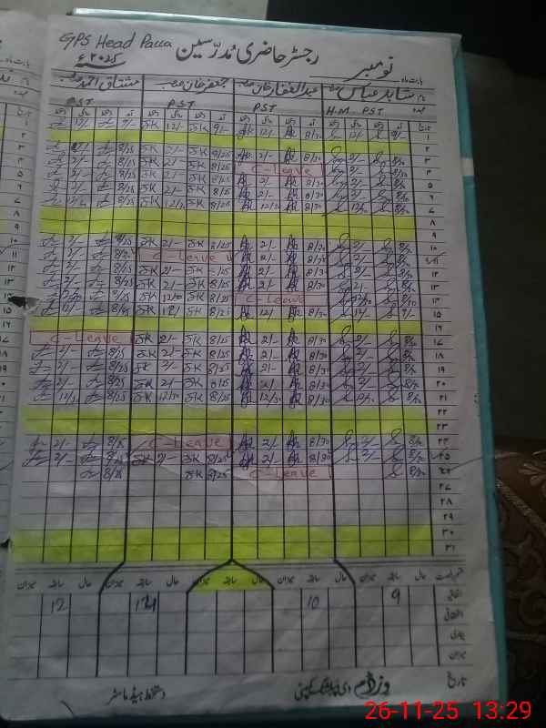 | Name: Sh**** Ab**** Designation: (School Headmaster's/Headmistress's) PST Phone/Cell Number: 03**** |