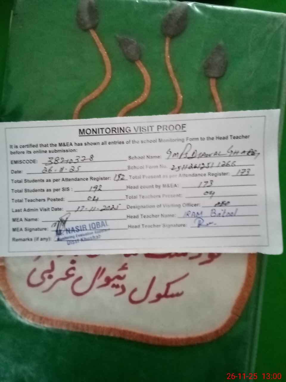 | EMIS Code: 38210378 | Name of School: GMPS DAIWAL GHARBI | |||