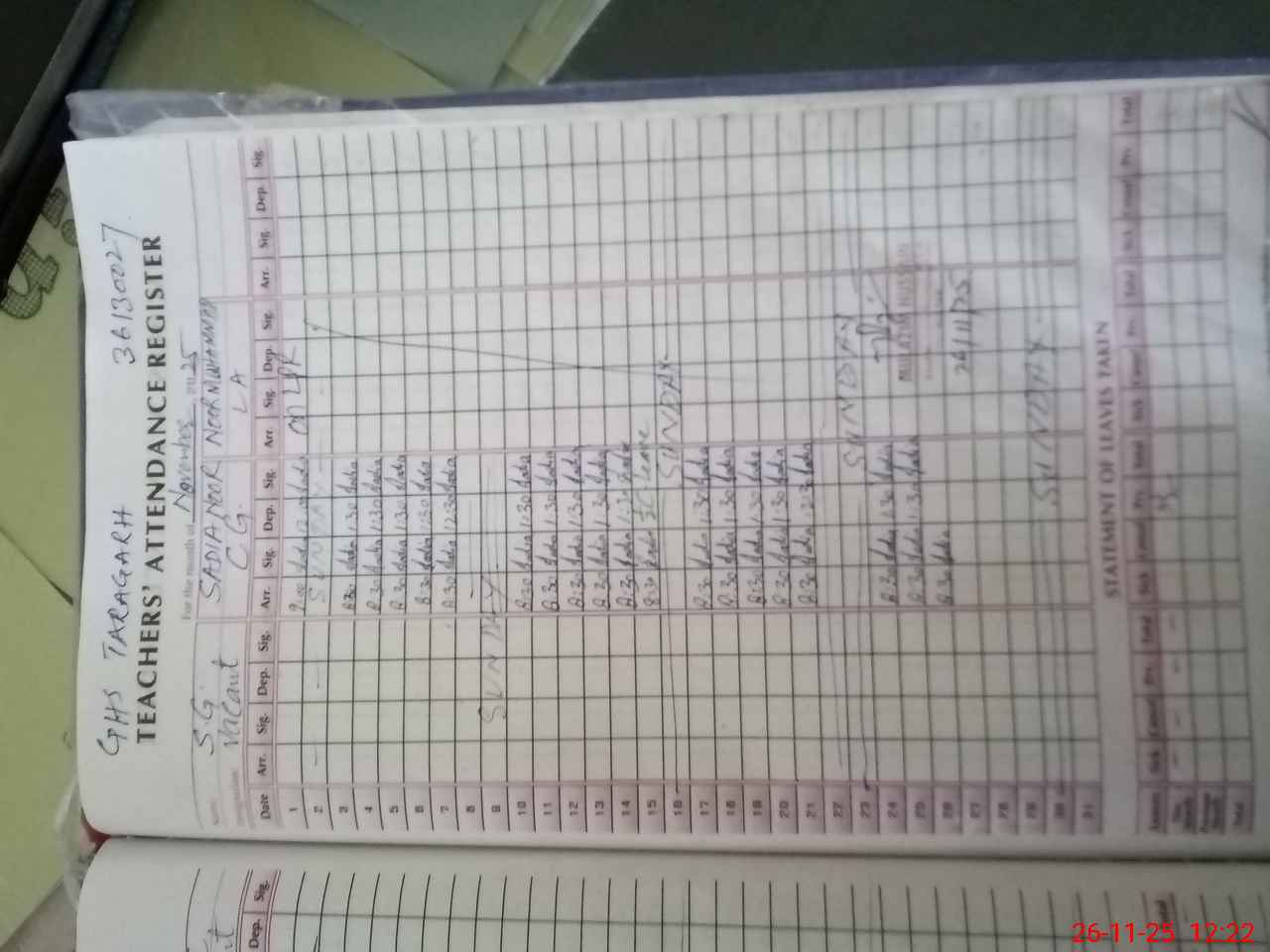 | Leave | Duty | Absent | Maternity | Medical | Ex- Pak |