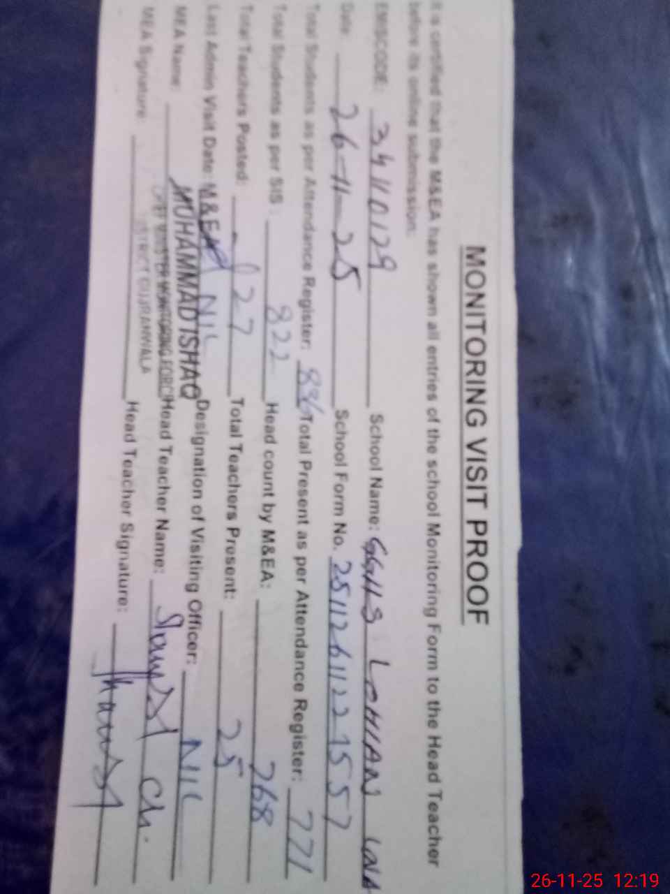 | EMIS Code: 34110129 | Name of School: GGHS LOHIAN WALA | |||