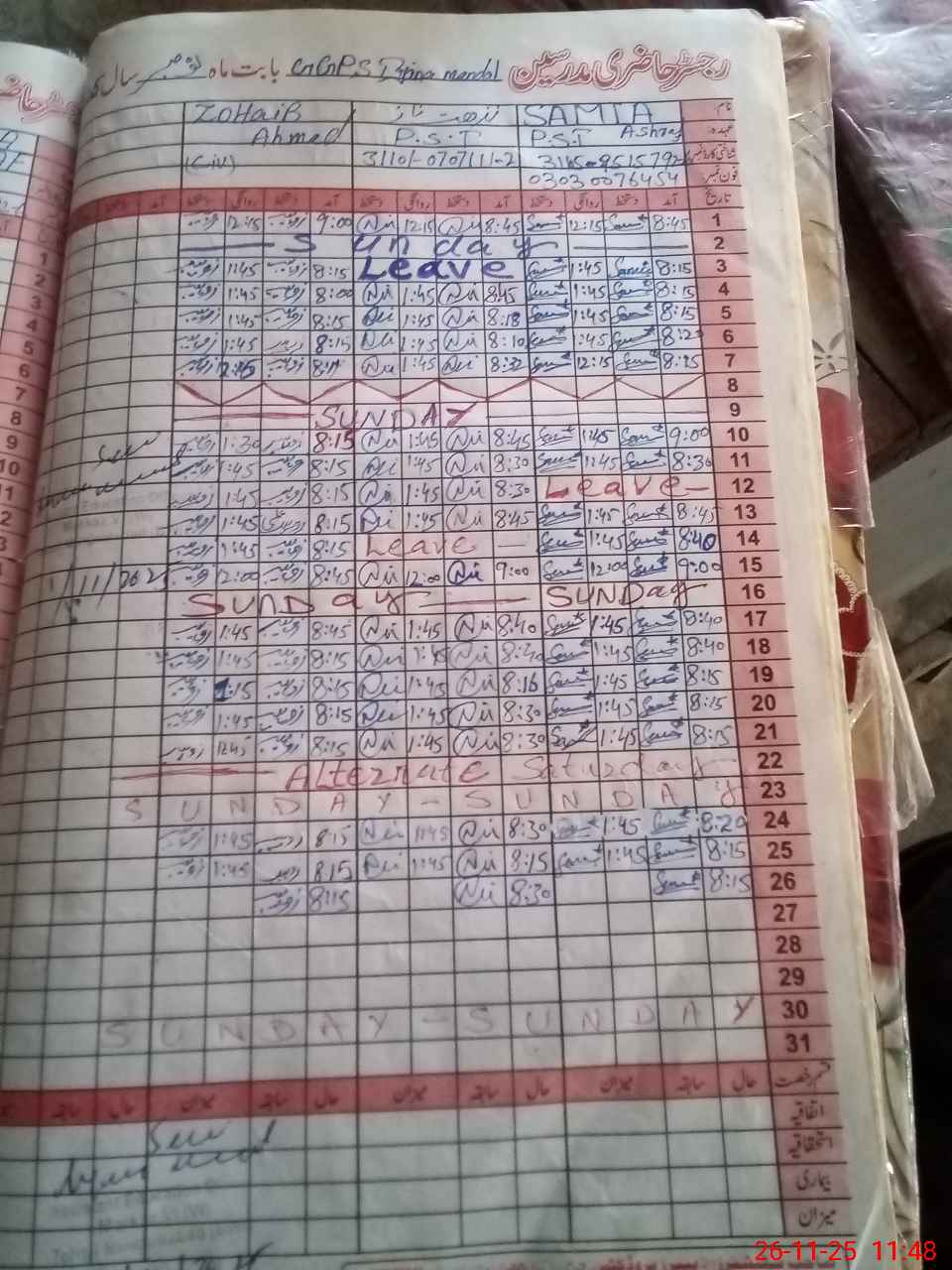 | Leave | Duty | Absent | Maternity | Medical | Ex- Pak |