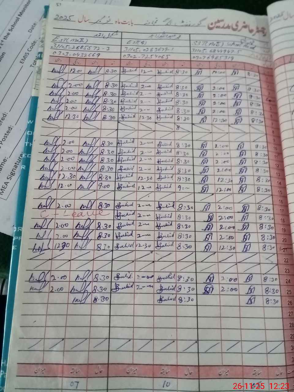 | Name: Mu**** Sa**** Designation: (School Headmaster's/Headmistress's) SST Phone/Cell Number: 03**** |