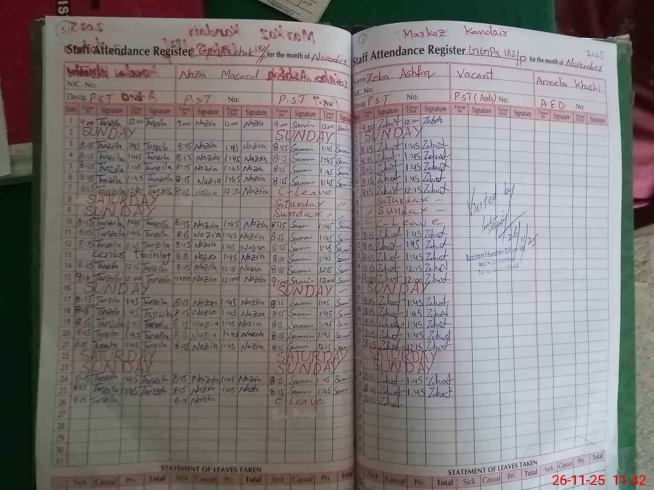 | CNIC | Full Name | Designation | R/C | Absence During Last Calender Month |