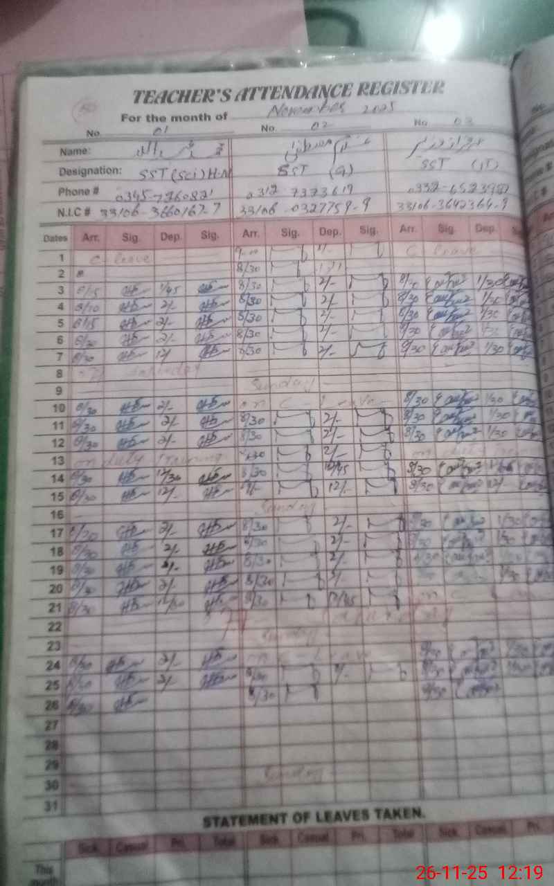 | Name: MU**** AB**** Designation: (School Headmaster's/Headmistress's) SST (SCIENCE) Phone/Cell Number: 03**** |