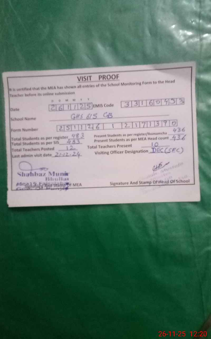 | EMIS Code: 33160433 | Name of School: GHS CHAK 615 GB TANDLIANWALA FSD | |||