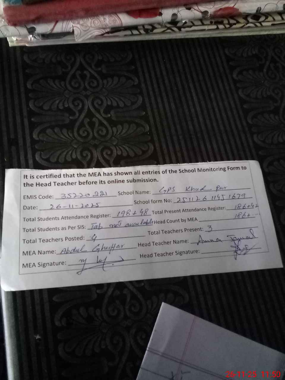 | EMIS Code: 35220221 | Name of School: GPS KHUD PUR | |||