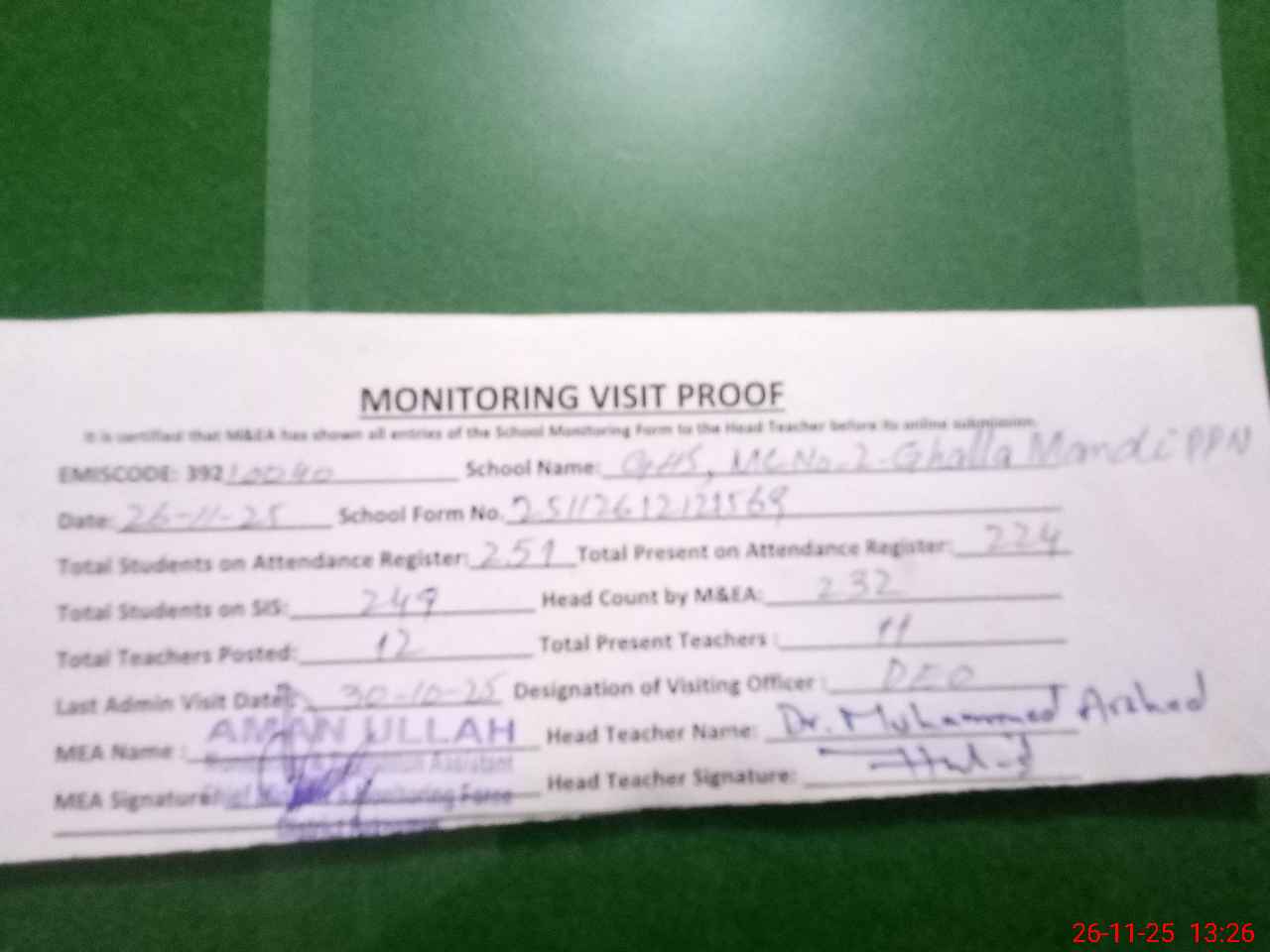 | EMIS Code: 39210040 | Name of School: GHS MC NO. 2 GHALLA MANDI | |||