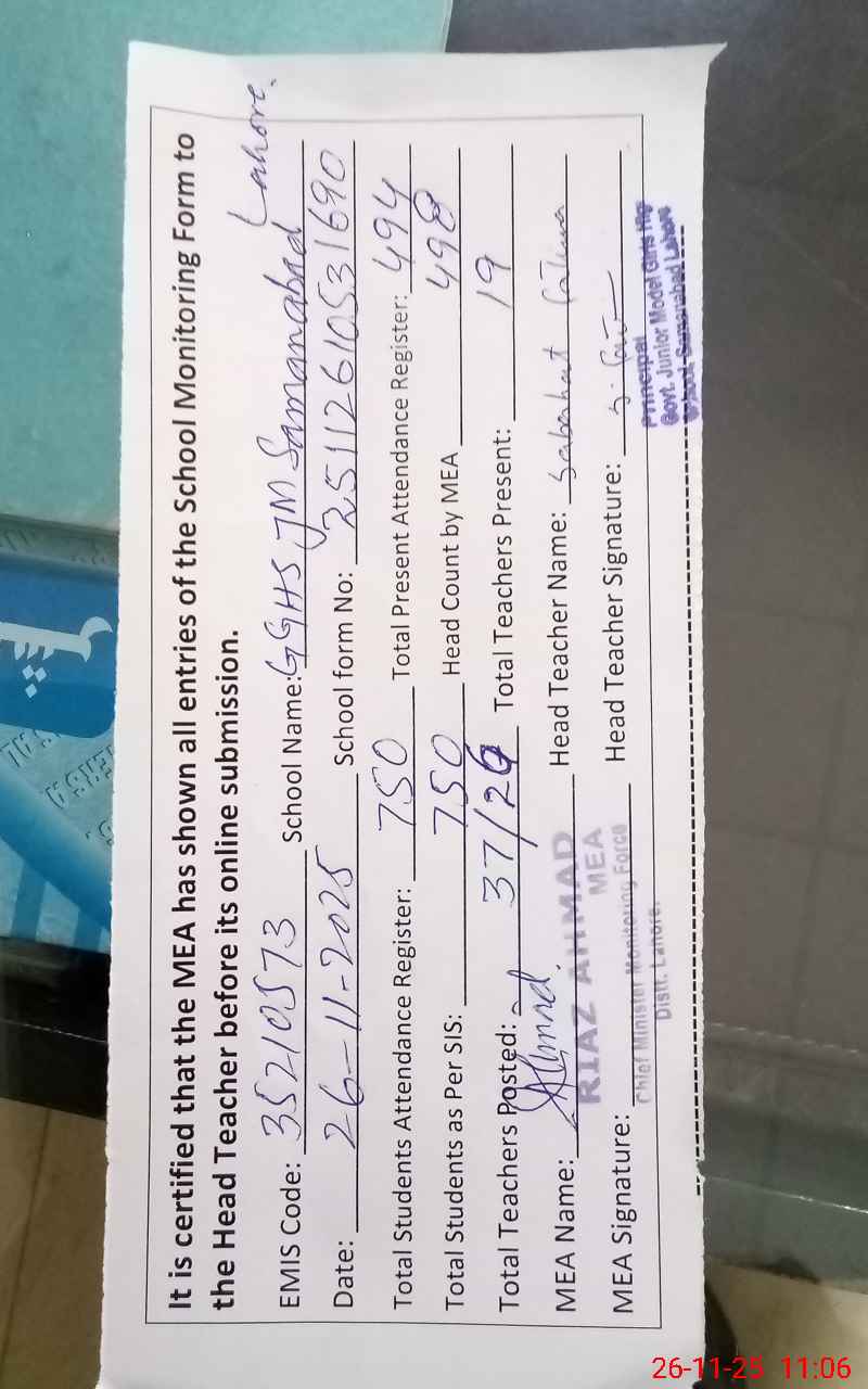 | EMIS Code: 35210573 | Name of School: GGHS JUNIOR MODEL SAMANABAD | |||