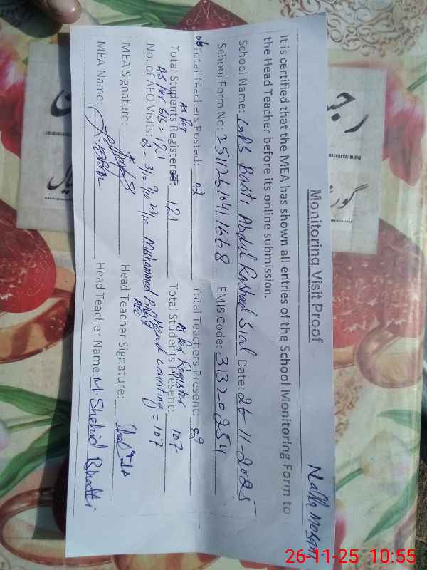 | EMIS Code: 31320254 | Name of School: GPS BASTI ABDUL RASHEED SIAL | |||