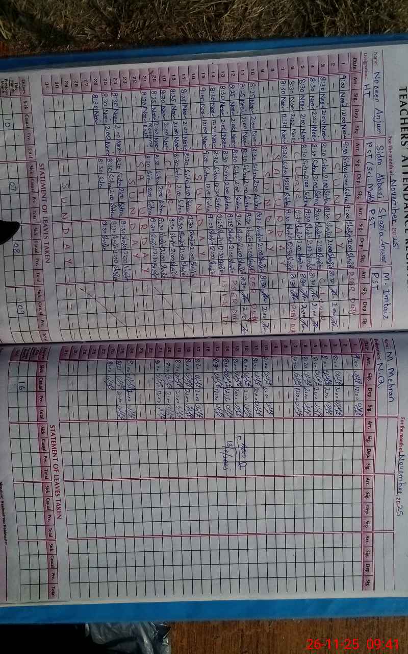 | Attendance Register | Head Teacher | MEA with School | Visit Proof |
