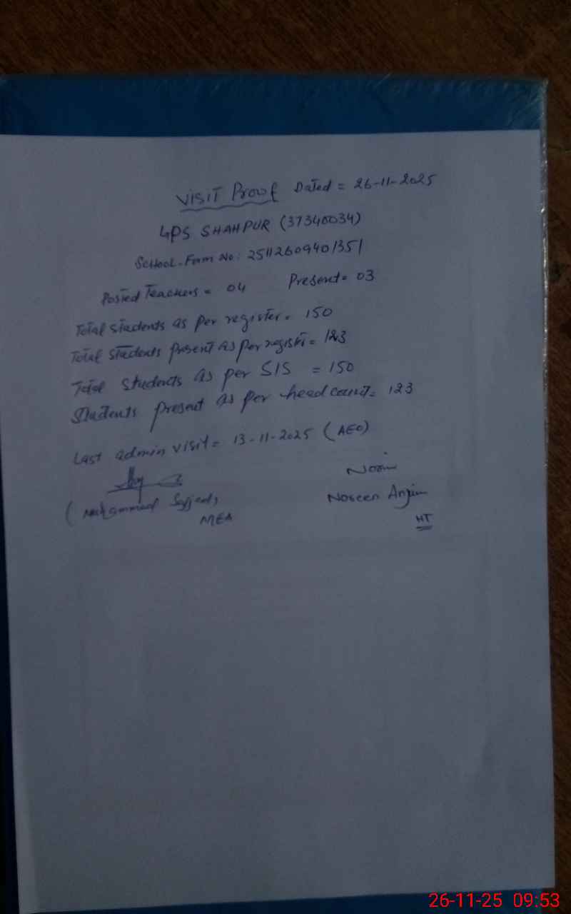 | EMIS Code: 37340034 | Name of School: GPS SHAHPUR | |||