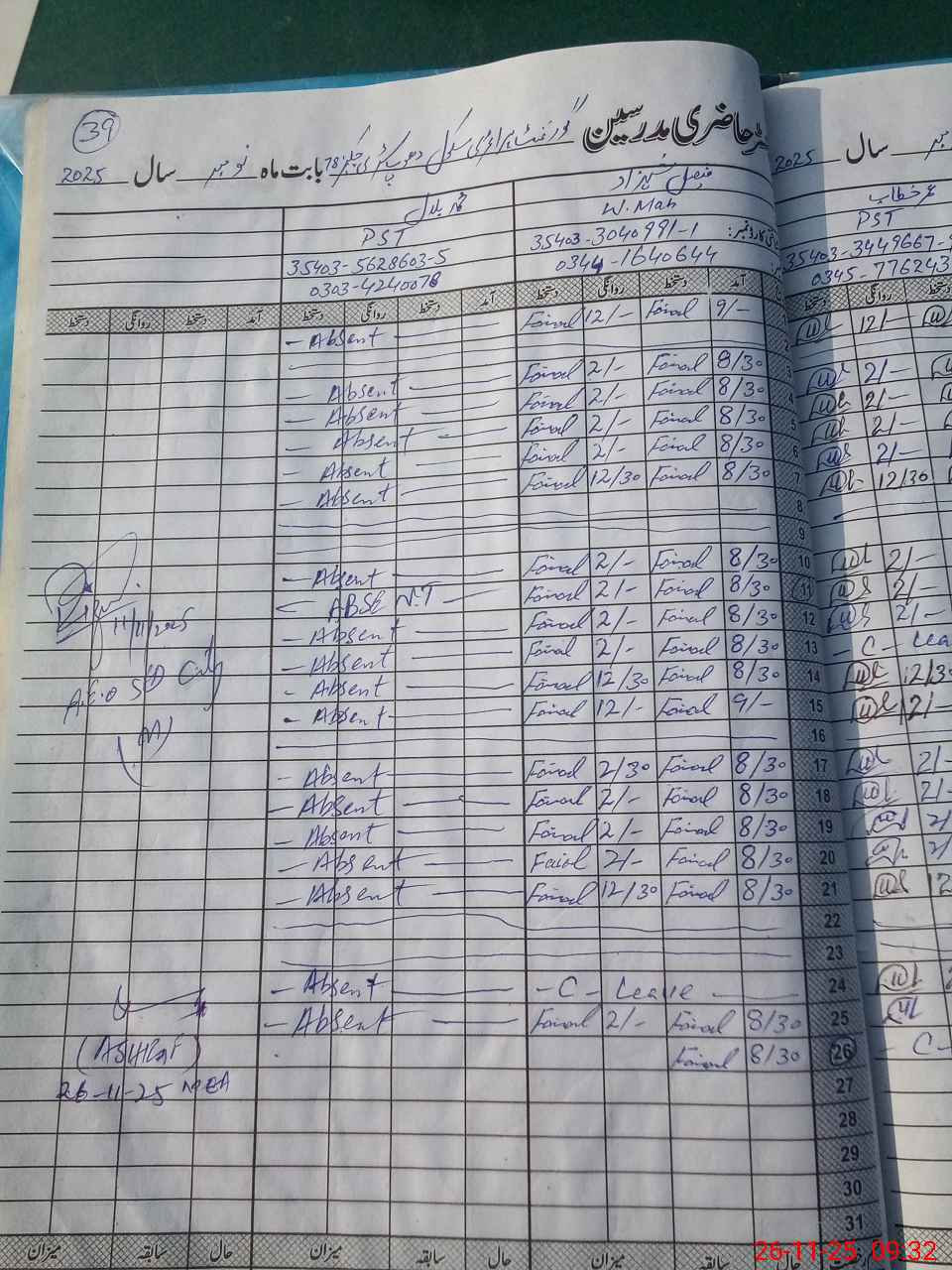 | Name: AB**** RA**** Designation: (School Headmaster's/Headmistress's) PST Phone/Cell Number: 03**** |