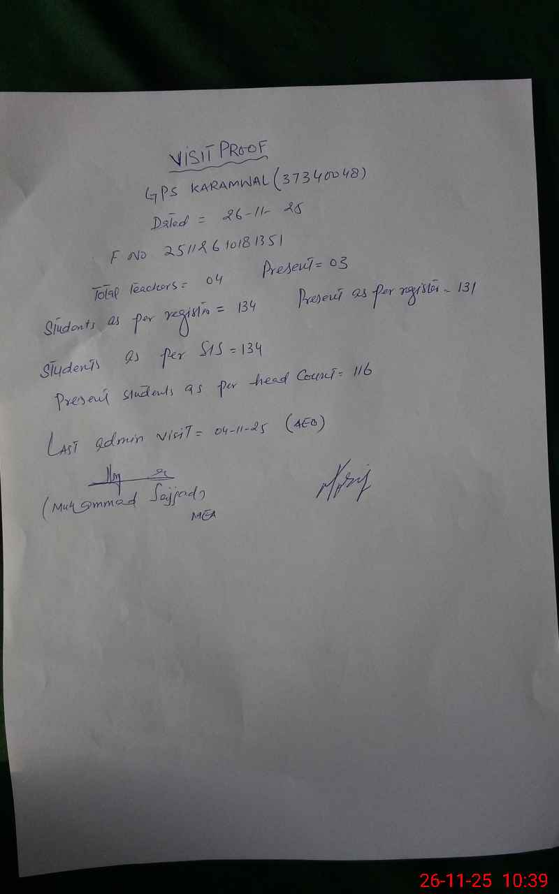 | EMIS Code: 37340048 | Name of School: GPS KARAM WAL | |||
