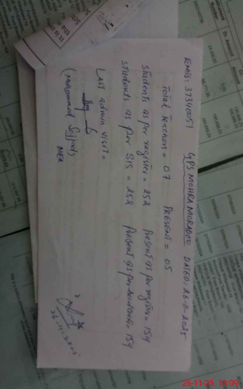 | EMIS Code: 37340051 | Name of School: GPS MOHRA MORADOO | |||