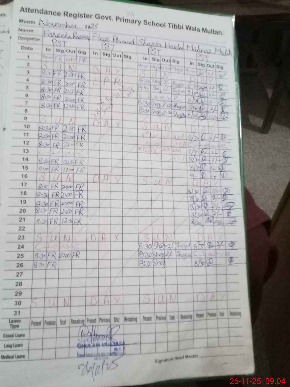 | Name: Ab**** Hu**** Designation: (School Headmaster's/Headmistress's) PST Phone/Cell Number: 03**** |