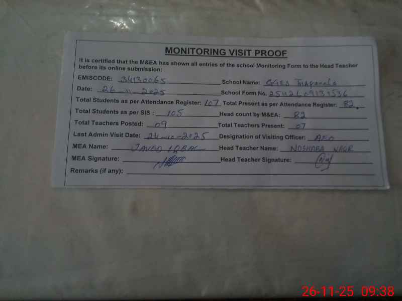 | EMIS Code: 34130065 | Name of School: GGES THAPNALA | |||