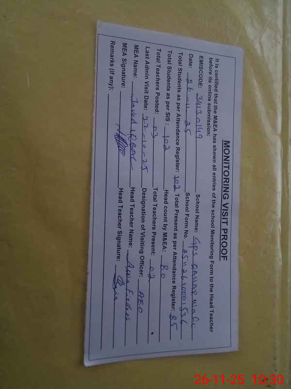 | EMIS Code: 34130149 | Name of School: GPS QAHAR WALI | |||