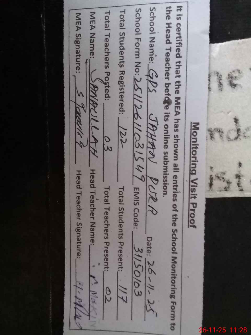 | EMIS Code: 31150103 | Name of School: GPS JAHAN PURA | |||