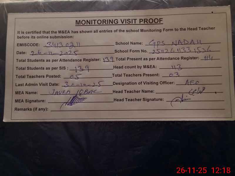| EMIS Code: 34130211 | Name of School: GPS NADHA | |||
