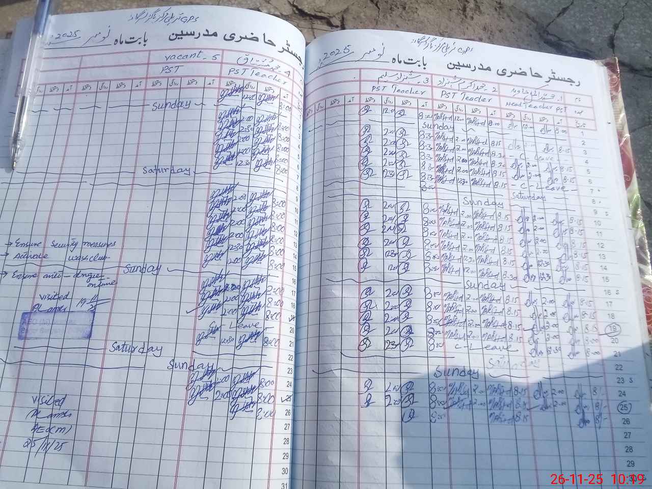 | Leave | Duty | Absent | Maternity | Medical | Ex- Pak |