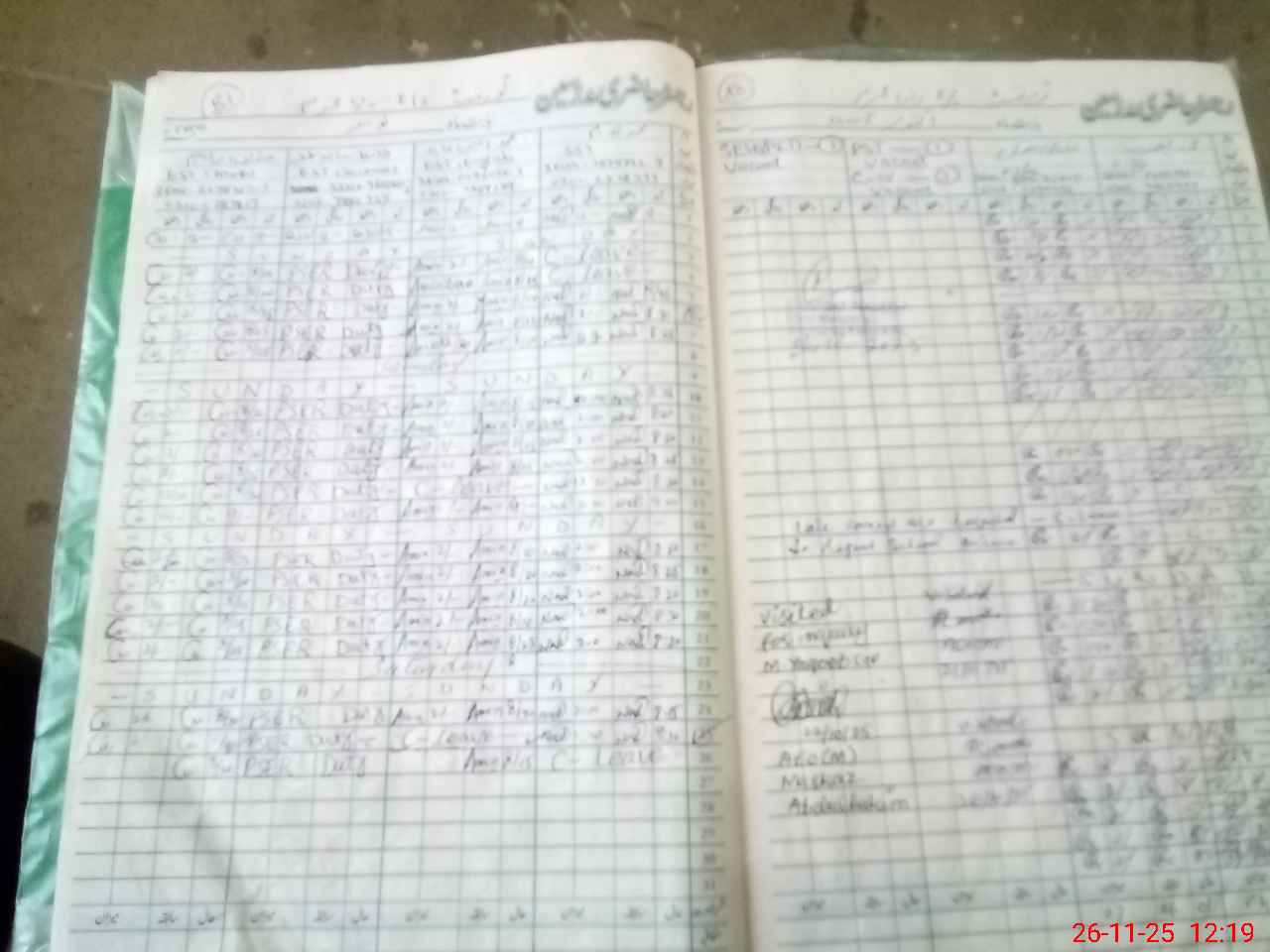 | Leave | Duty | Absent | Maternity | Medical | Ex- Pak |