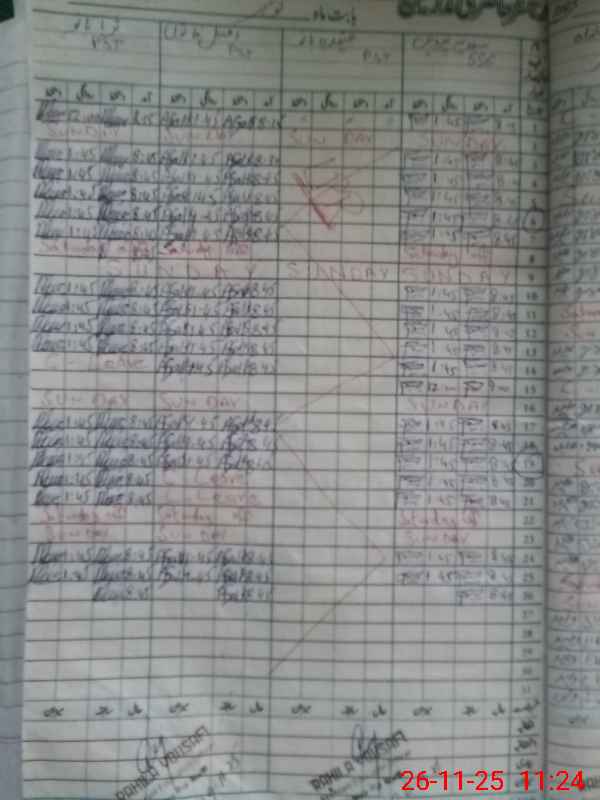 | CNIC | Full Name | Designation | R/C | Absence During Last Calender Month |