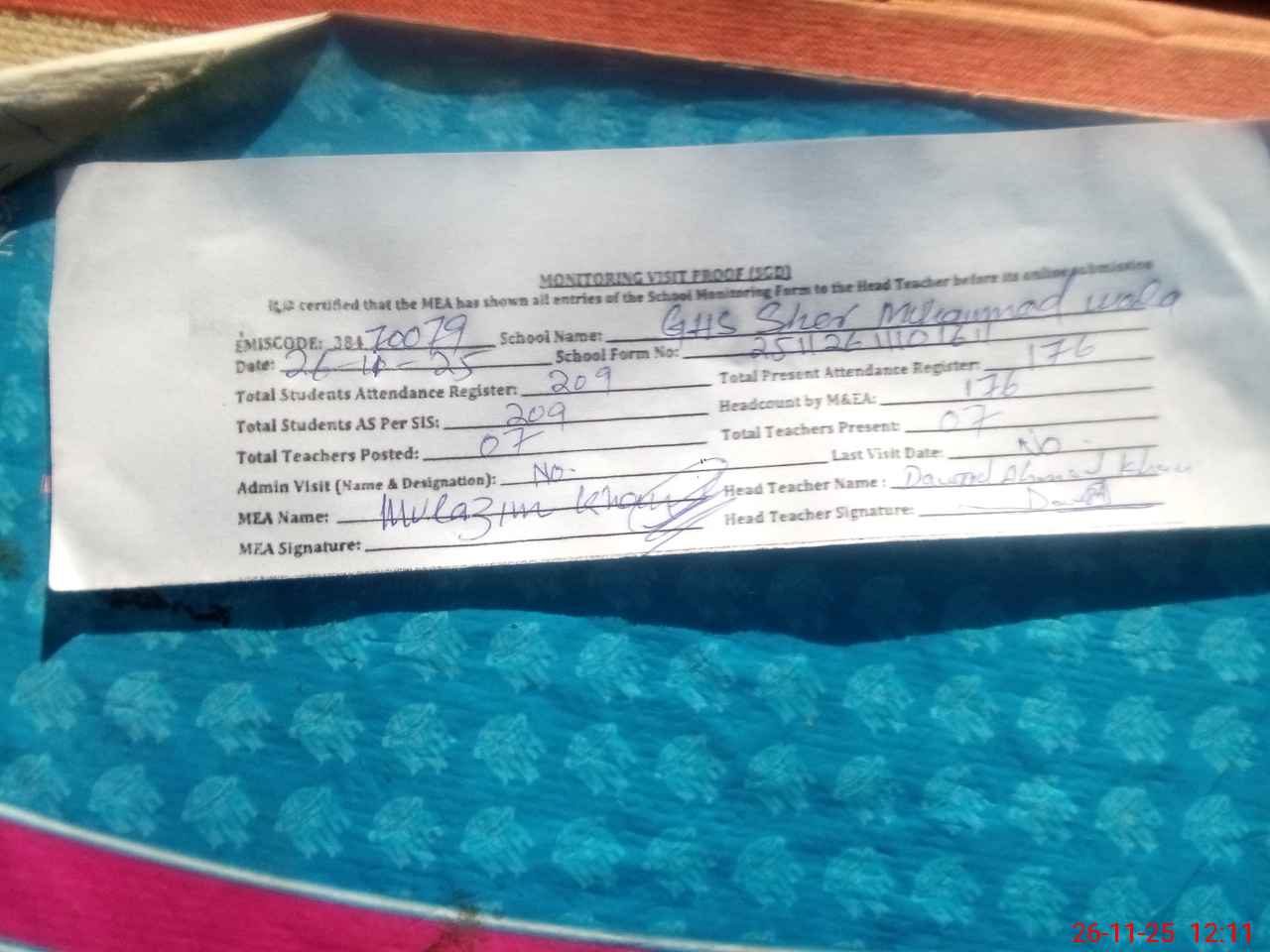 | EMIS Code: 38470079 | Name of School: GHS SHER MUHAMMAD WALA | |||