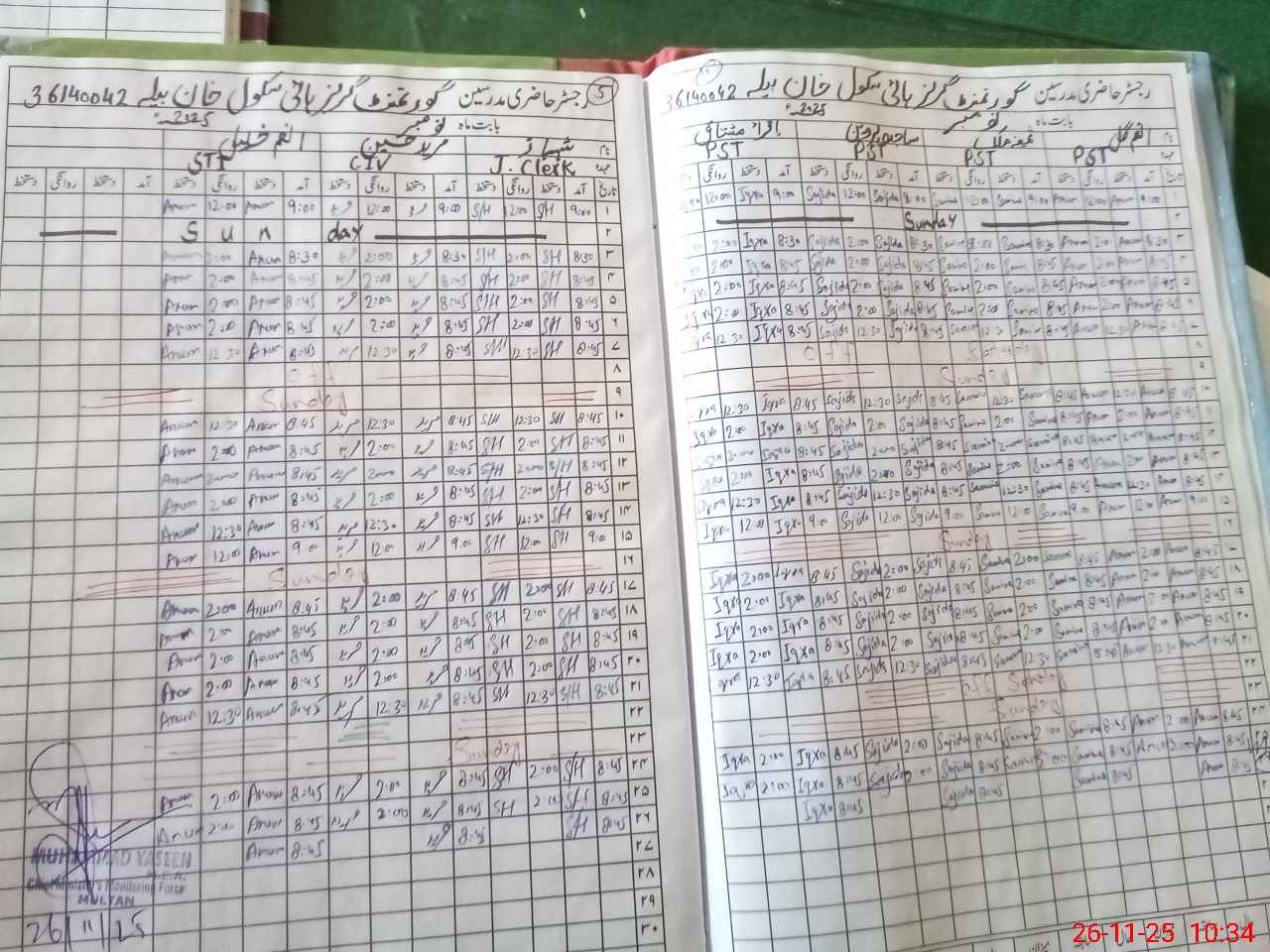 | Monitoring Date: 26-11-2025 | Start Time: 26-11-2025 10:30 AM | End Time: 26-11-2025 10:54 AM | Name of MEA: MU**** YA**** | |