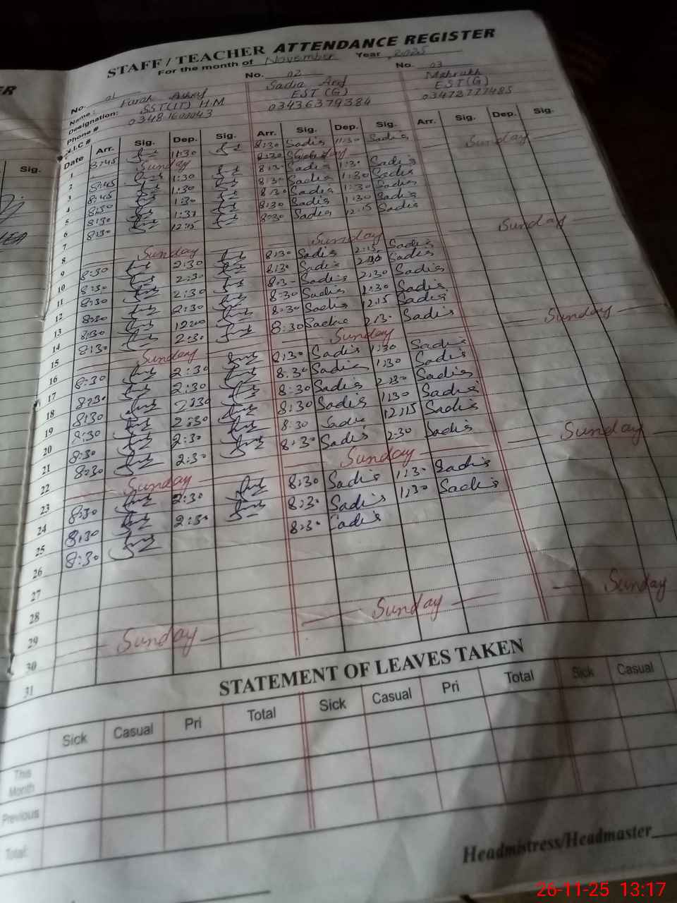 | Name: Fa**** As**** Designation: (School Headmaster's/Headmistress's) S.S.T. Phone/Cell Number: 03**** |