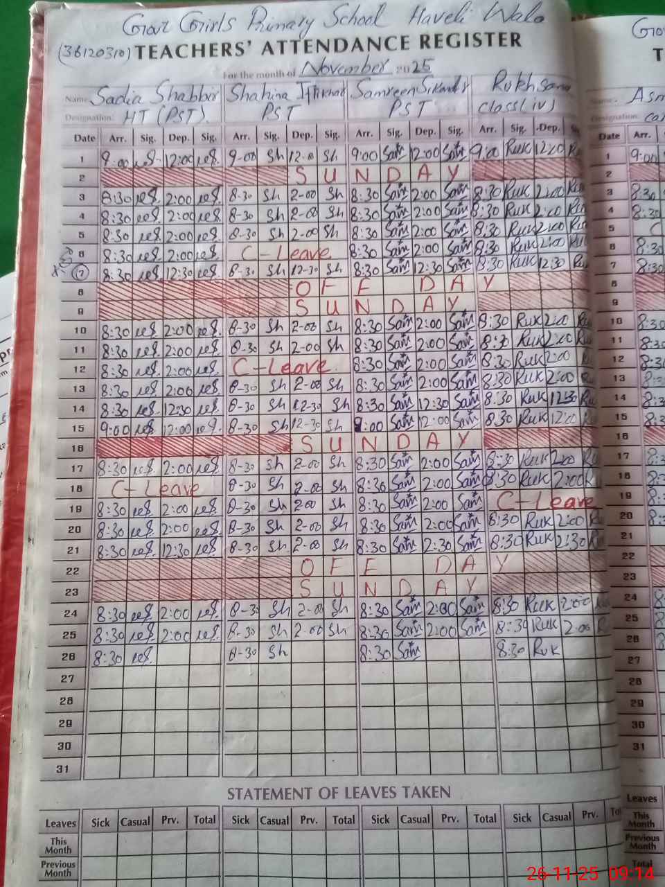 | Leave | Duty | Absent | Maternity | Medical | Ex- Pak |