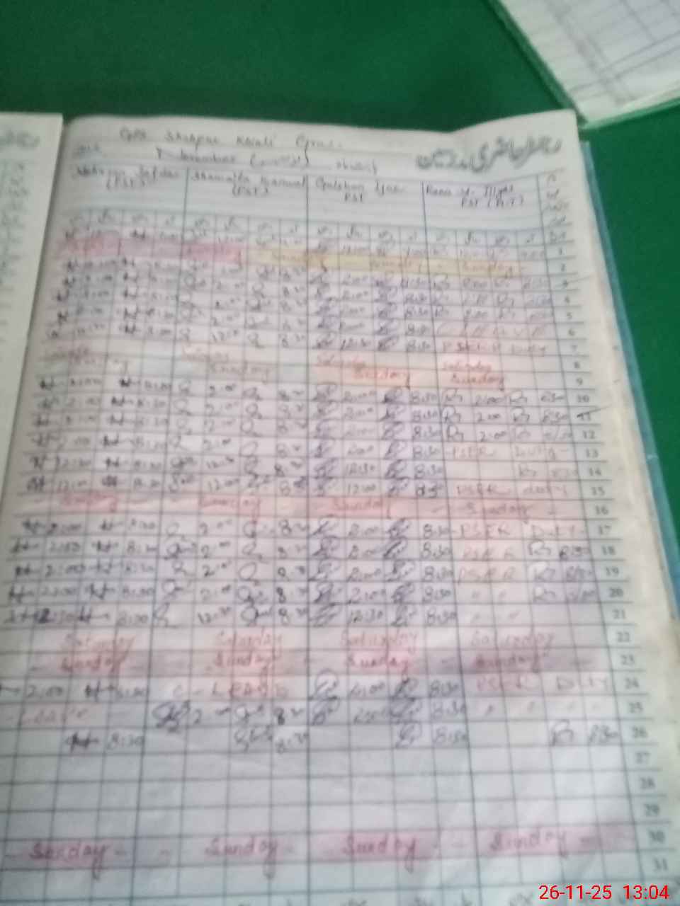 | CNIC | Full Name | Designation | R/C | Absence During Last Calender Month |