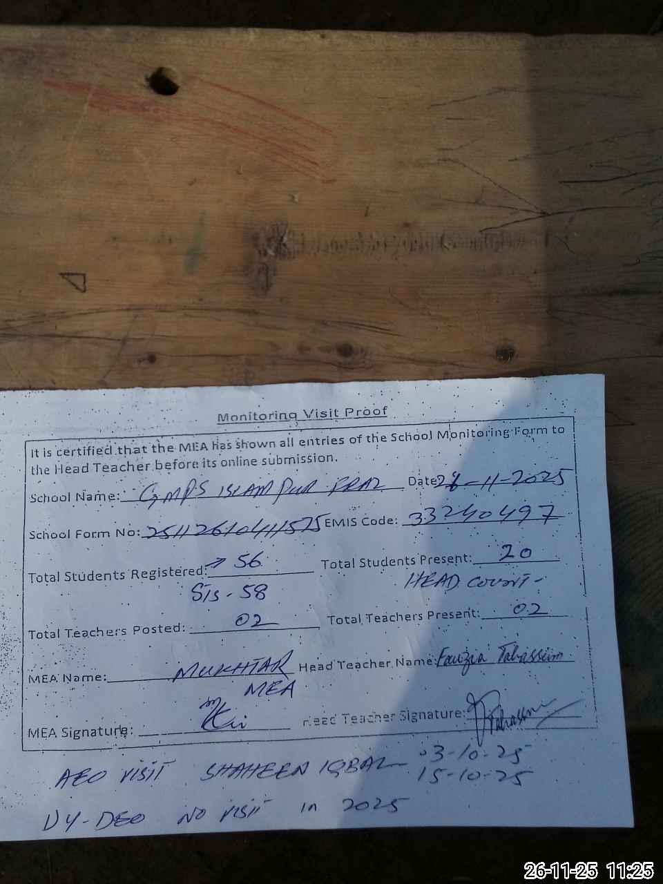 | EMIS Code: 33240497 | Name of School: GMPS ISLAM PUR FARAZ | |||