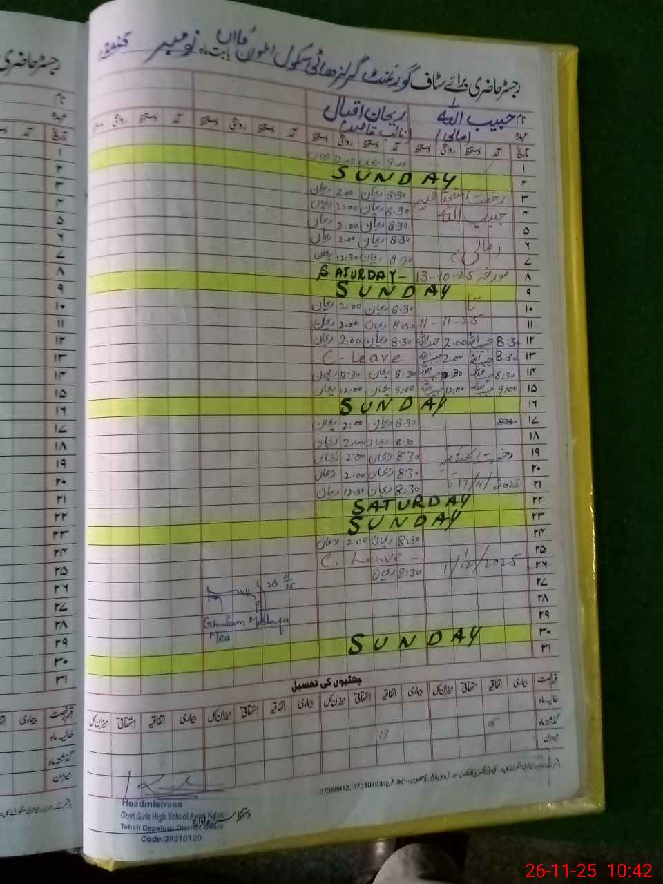 | Name: UM**** ULMA**** Designation: (School Headmaster's/Headmistress's) S.S.T.(Arts) Phone/Cell Number: 03**** |